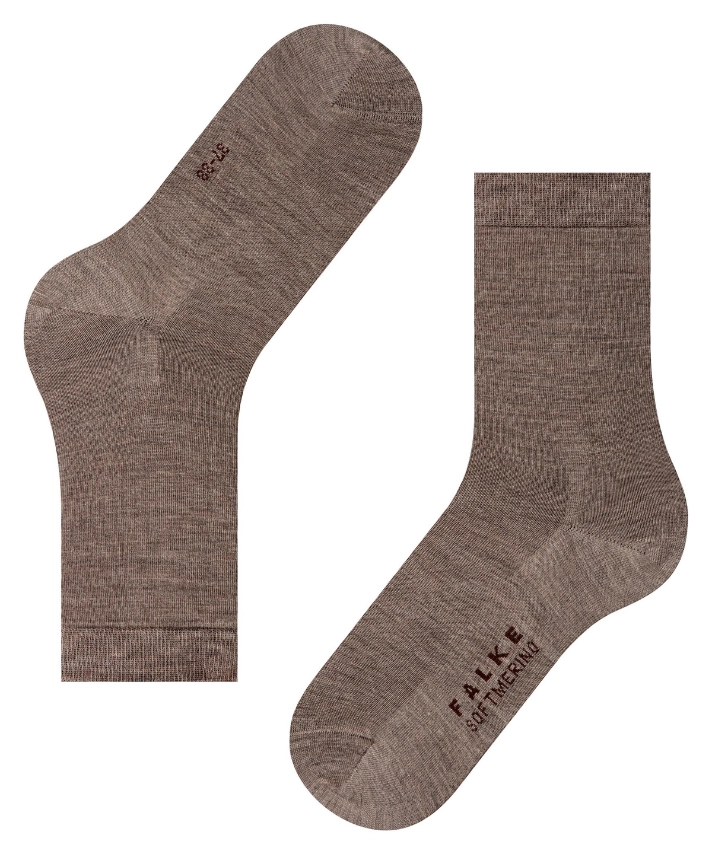 Falke strømpe til kvinde – Softmerino – Valnød