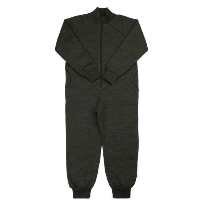 Denne dejligt varme natdragt i dyb mosgrøn er perfekt til kolde nætter og kølige dage. Fremstillet i en tyk, vamset merinould med blød børstet uld på indersiden, der føles som et kærligt kram mod barnets hud.