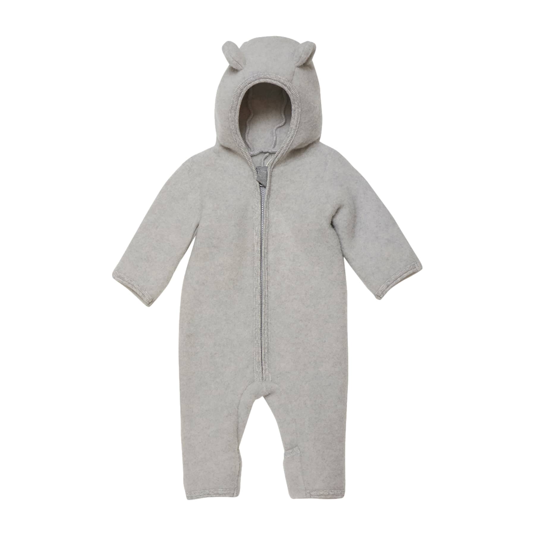 Huttelihut køredragt i uldfleece til baby. Grå.