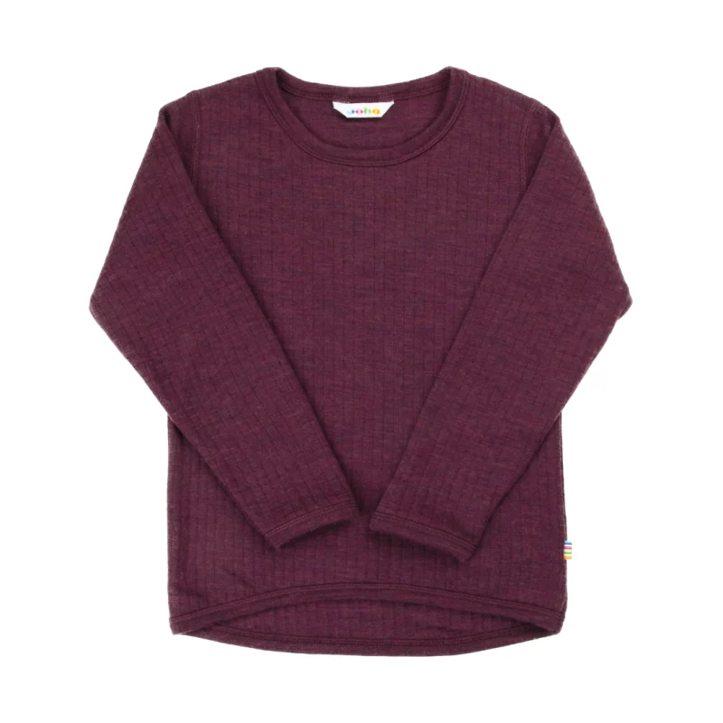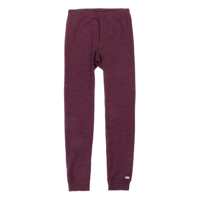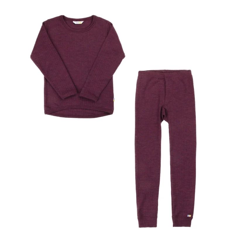 Skiundertøj eller nattøj til barn. 100% merinould. Blomme (bordeaux).