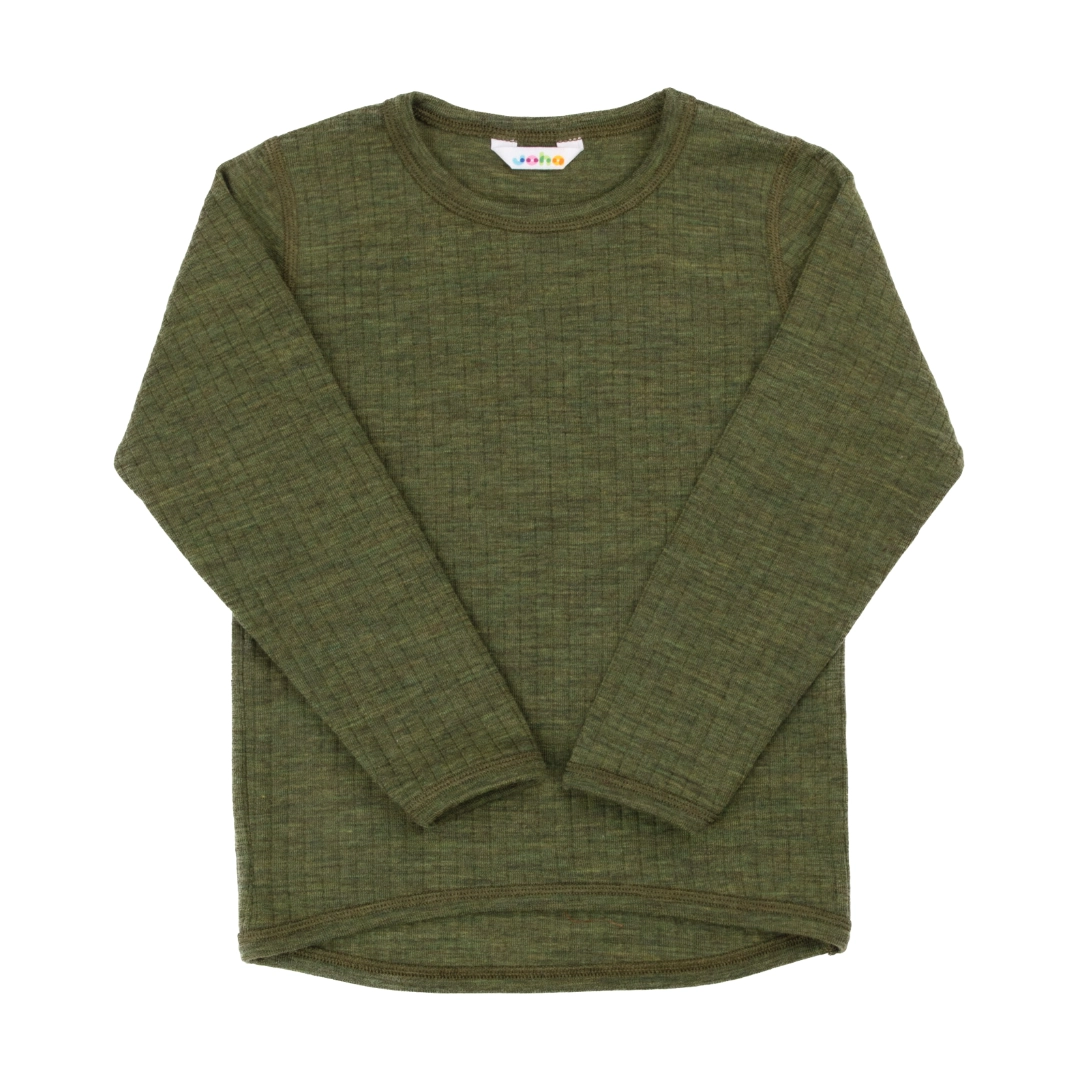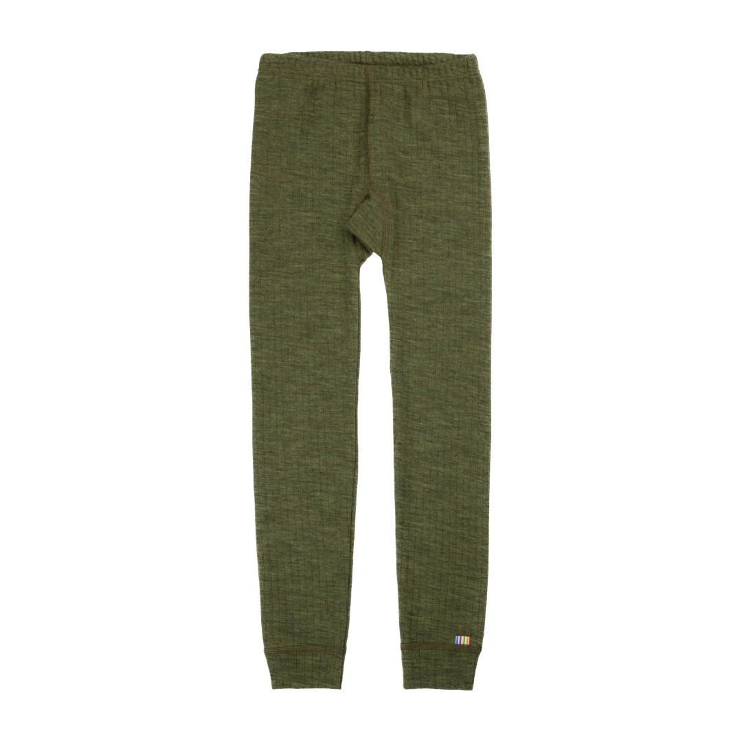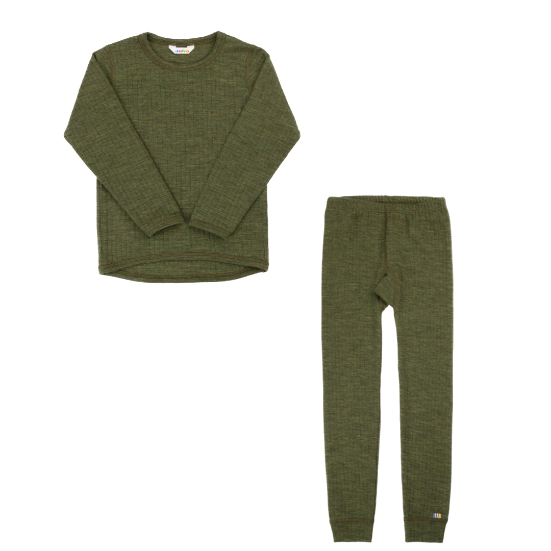Skiundertøj eller nattøj til barn. 100% merinould. Oliven (mørkegrøn).